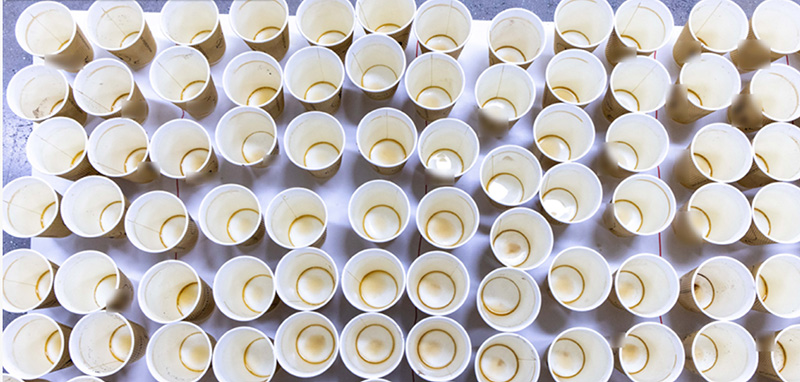 Preskus togosti: V primerjavi s tradicionalnimi metodami imajo tako prazne papirnate skodelice kot tiste, napolnjene s tekočino, večjo togost.